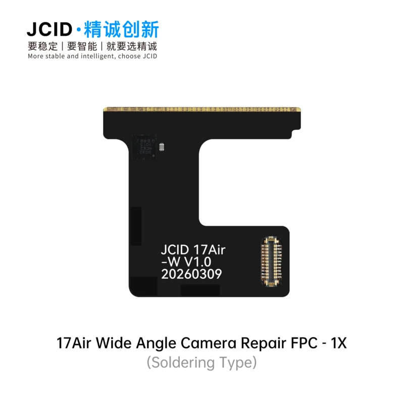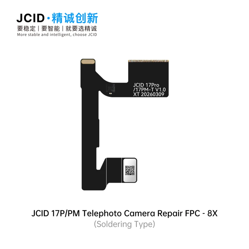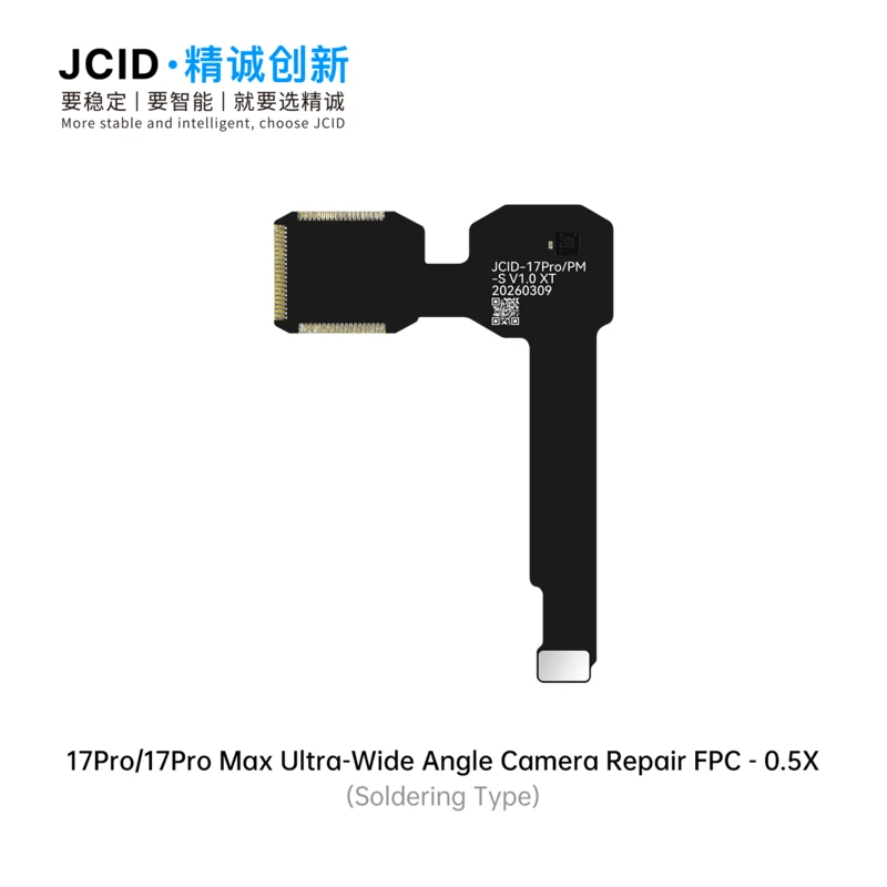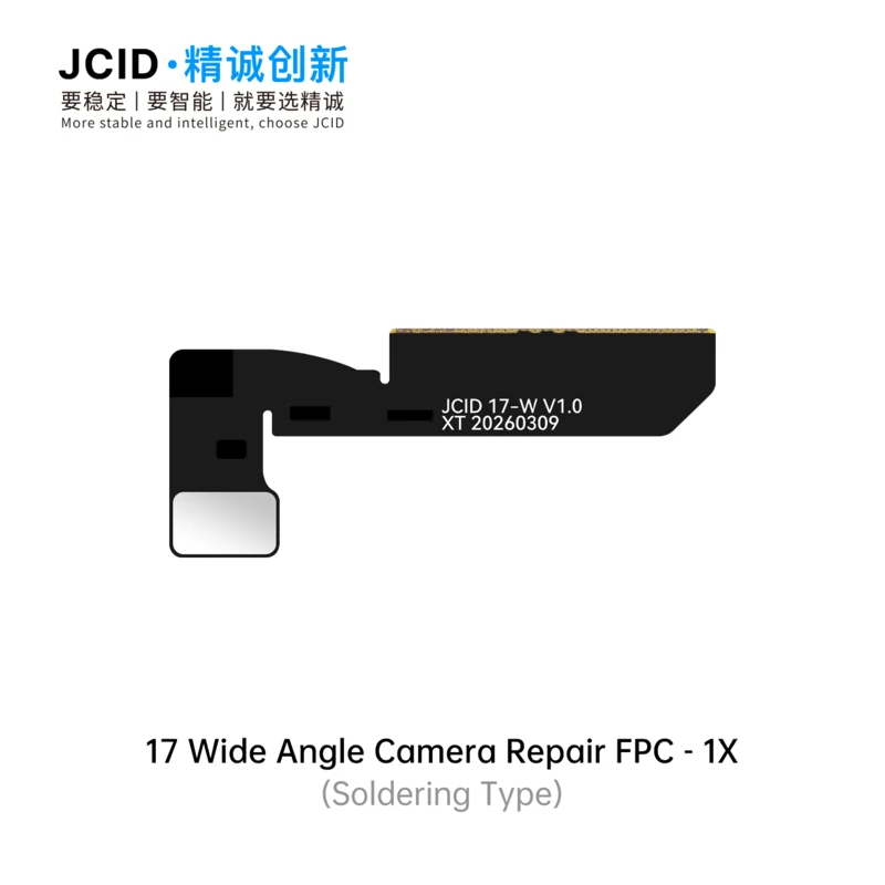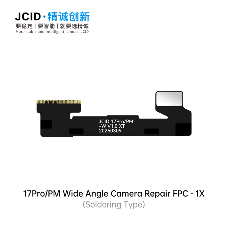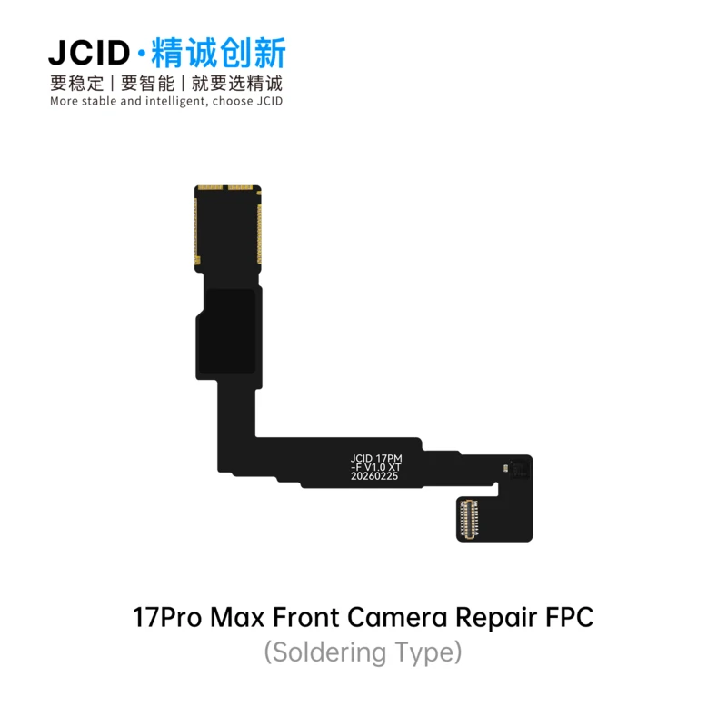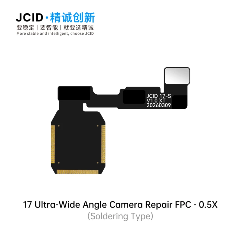 The JCID 17 Series Camera Repair FPC & Adaptor is a professional solution designed to fix front and rear camera issues caused by non-original parts. Available in both soldering type and tag-on type, it offers flexible repair options for different technical needs. Featuring high-speed signal design and electromagnetic shielding, it ensures stable performance and reliable image transmission. This solution effectively resolves common faults such as front camera focus failure, white-screen video recording, and rear camera pop-up alerts. With support for unbinding, technicians can complete repairs even without the original camera module. The adaptor is fully compatible with V1SE, V1S Pro, and V1S Plus programmers, making it ideal for professional repair shops seeking efficient, stable, and cost-effective camera repair solutions for 17 series devices.