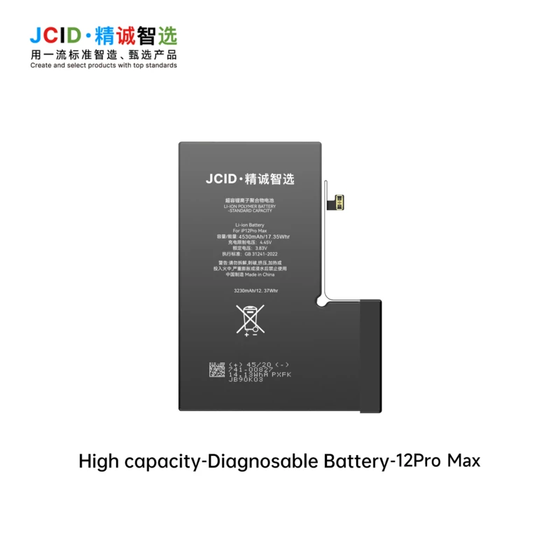 The JCID Diagnostic Battery is a next-generation replacement solution designed to deliver an original-like iPhone experience without system warnings. Featuring independent diagnostics, it eliminates the “Unknown Part” message while allowing battery health and cycle count read/write repair for accurate performance restoration. With brand-new 0 cycle status, real capacity, and 100% health display, it ensures reliable power without transferring the original battery flex. Built-in PCM protection, smart temperature control, and dual-core safety design enhance stability across extreme environments from -20°C to 50°C. Fully compatible with PD fast charging, this battery offers long-lasting endurance, low-heat operation, and dependable performance. Ideal for professional repair centers and users seeking a stable, high-capacity, and fully diagnosable battery replacement with no pop-up alerts and guaranteed quality.