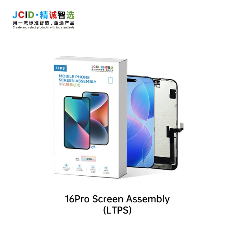 The JCID LTPS Screen Assembly delivers an original-level visual and touch experience through advanced LTPS (Low-Temperature Polycrystalline Silicon) technology and precision COF craftsmanship. Featuring FHD resolution, ultra-narrow bezels, and a 1:1 original window design, it restores authentic display clarity and device aesthetics. With an original thickness of 1–2 mm and a precise tolerance of just 0.1 mm, installation is seamless and perfectly aligned. The screen offers 360° anti-glare performance, vibrant color reproduction, and smooth, responsive touch for a true factory-like feel. Designed to match original notch and Dynamic Island structures, it ensures full visual integrity. Ideal for professional repair and refurbishment, the JCID LTPS Screen Assembly is the ultimate high-definition replacement solution to bring devices back to life.